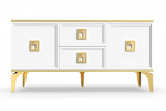 Тумба под ТВ Сириум имеет достаточно широкую столешницу, на которую легко поместится телевизор, а также небольшие предметы декора. Внизу тумбы расположены полки, которые можно использовать для хранения книг, журналов или мультимедийных устройств. Благодаря фрезеровке тумба выглядит особенно изысканно и привлекает внимание.